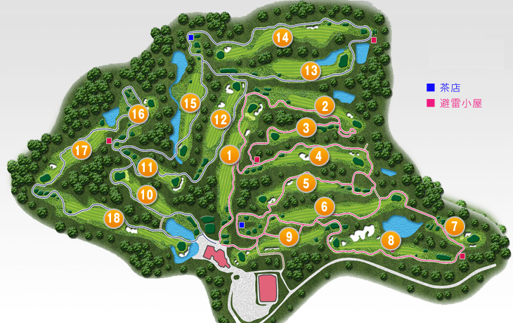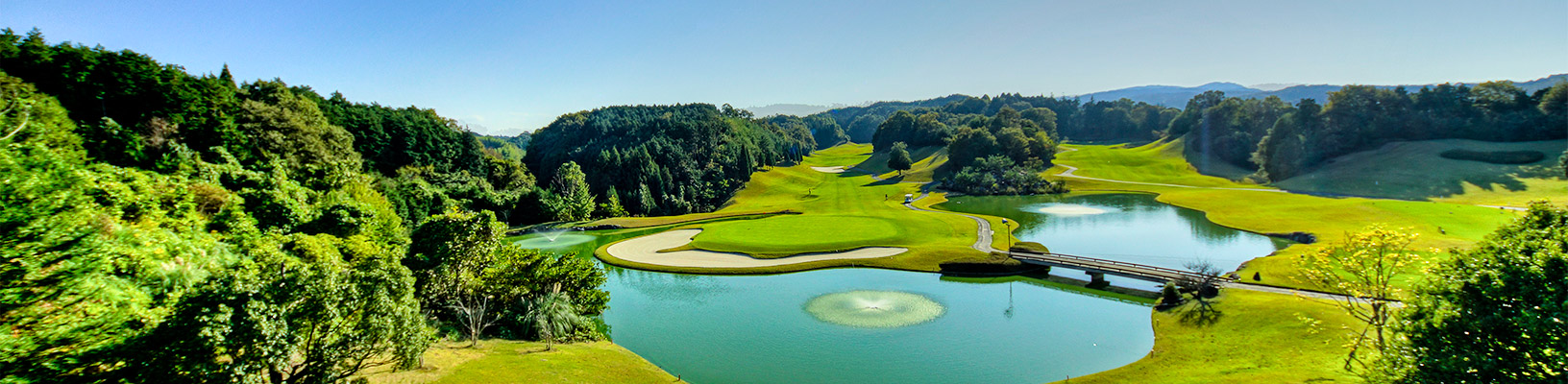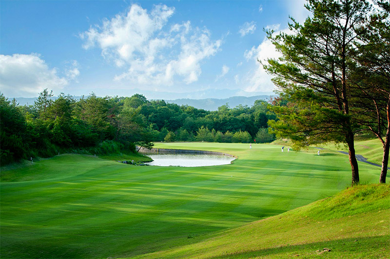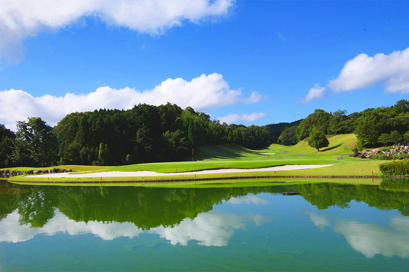 名匠・加藤俊輔が美しい自然林の中に紡いだ、戦略性の高い丘陵コース。フラットな地形に造成された広大なフェアウェイは、豪快なスイングでゴルフの醍醐味を存分に味わえる。一方で美しく配置された池などのハザードは、プレーヤーを悩ませ挑戦心を掻き立てて止まない。各ホールとも戦略性に富んだバラエティが魅力だが、名物ホールはインの18番。クラブハウスへと打ち下ろすロングホールは、グリーンを池が囲み戦略性の高さを象徴し、訪れるプレーヤーの記憶に美しく刻まれる。